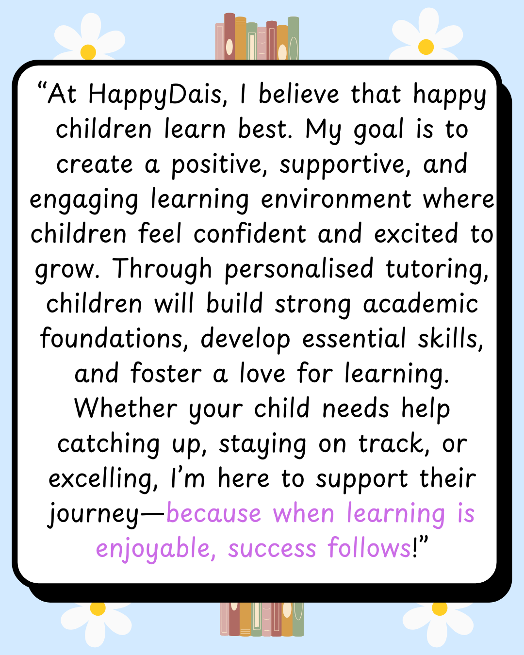 I make lessons fun, practical and engaging so your child feels excited to learn and be proud of their progress.